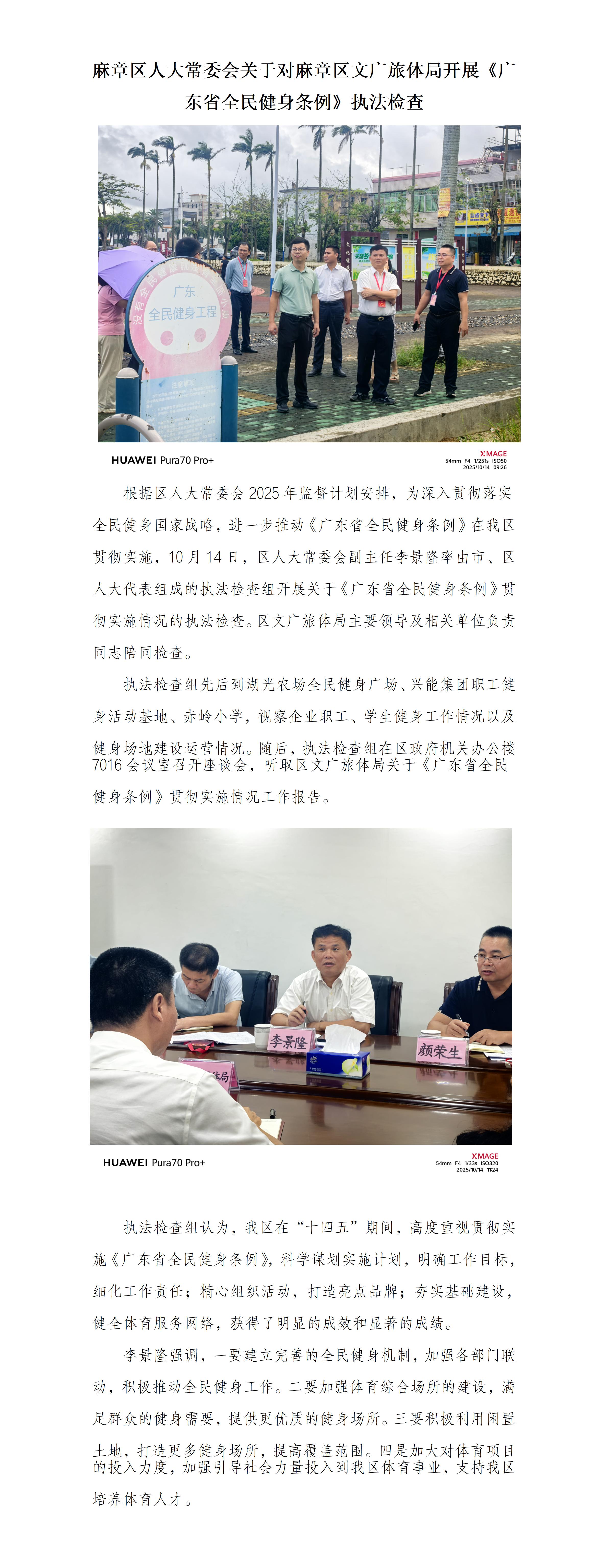 麻章区人大常委会关于对麻章区文广旅体局开展《广东省全民健身条例》执法检查