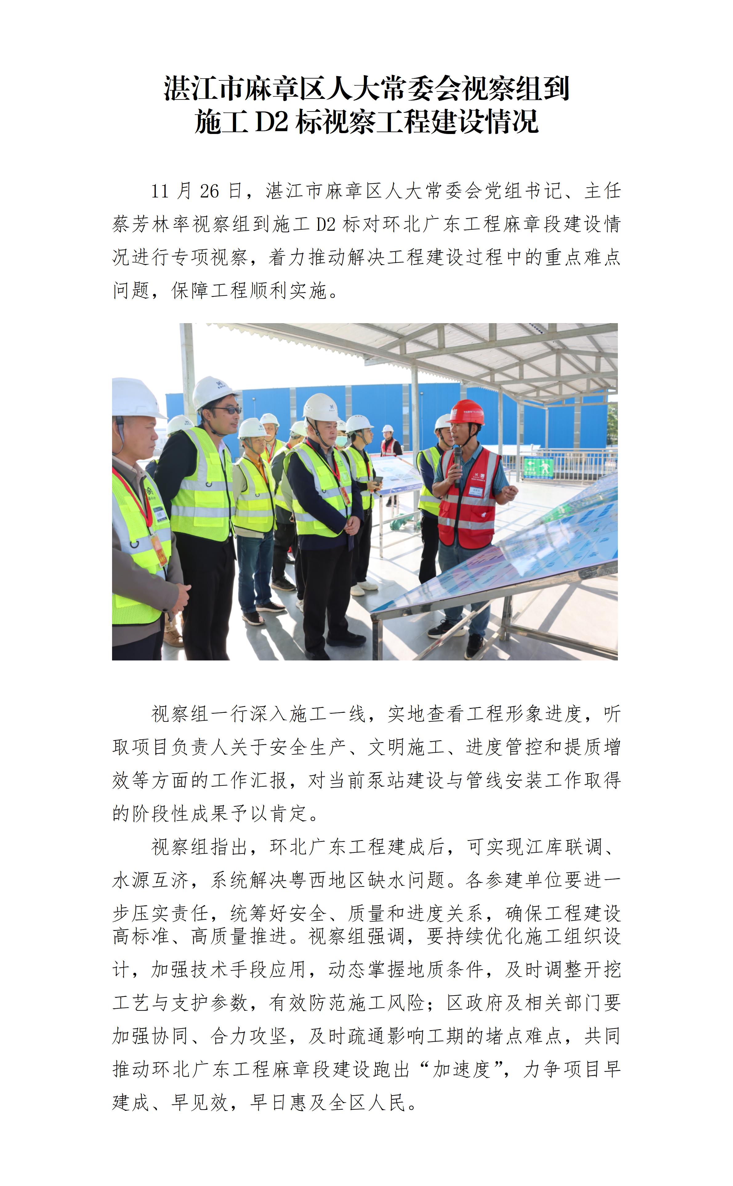 湛江市麻章区人大常委会视察组到 施工D2标视察工程建设情况